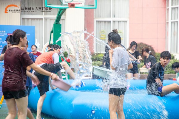 七月的杭州,熱浪如潮,蟬鳴聒噪。當整座城市被暑氣籠罩,杭州新東方烹飪學(xué)校的校園里,一場 “歡樂潑水節(jié)” 卻逆勢而行,為師生辟出一片清涼綠洲,讓整個校園變成了歡樂的海洋。