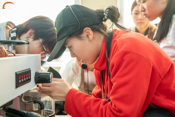 次日,咖啡實(shí)訓(xùn)區(qū)內(nèi),空氣中又添了幾分醇厚的香氣。主講人周欣欣老師身兼MCA大師咖啡聯(lián)盟沖煮一級、PCA拉花認(rèn)證二級等多項(xiàng)資質(zhì),她的課堂同樣充滿“技術(shù)流”的細(xì)膩。周老師從咖啡豆的烘焙程度、研磨粗細(xì),到萃取時間的精準(zhǔn)控制,逐一進(jìn)行講解示范。手沖咖啡的細(xì)流緩緩注入杯中,醇厚的香氣讓馬來西亞師生紛紛駐足。