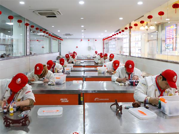 一幅幅栩栩如生的飛龍、蟲鳥、花草、建筑等主題畫景在碟盤之上躍然而出,其效果絲毫不遜于宣紙上的繪畫作品。這些精美的果醬畫不僅為菜肴增添了無限魅力,也充分展示了學(xué)員們對藝術(shù)的追求和才華。