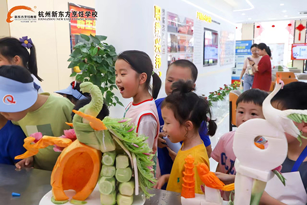 在杭州新東方學(xué)子的巧手下,原本平凡無奇的蘿卜,仿佛被賦予了生命,化身為栩栩如生的鳥獸花卉,引得孩子們陣陣歡呼。