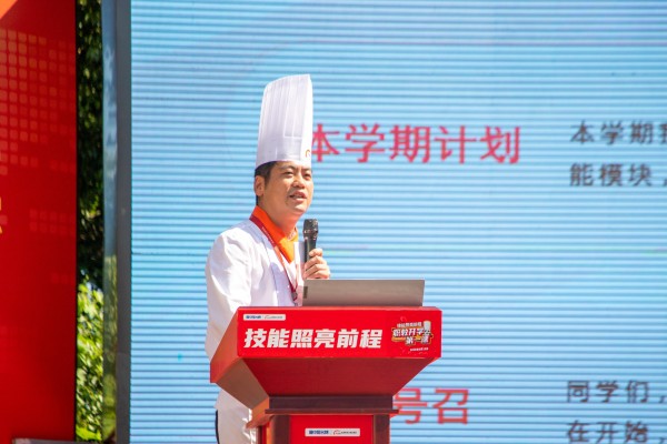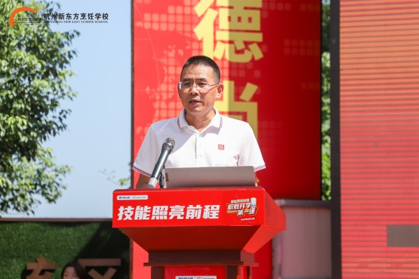 活動(dòng)最后,校長(zhǎng)上臺(tái)致辭。他首先向滿懷夢(mèng)想、朝氣蓬勃的新同學(xué)們表示最熱烈的歡迎,歡迎大家加入杭州新東方這個(gè)傳承技藝、創(chuàng)造美味的大家庭,同時(shí)也向如期返校的同學(xué)們致以誠(chéng)摯問(wèn)候。