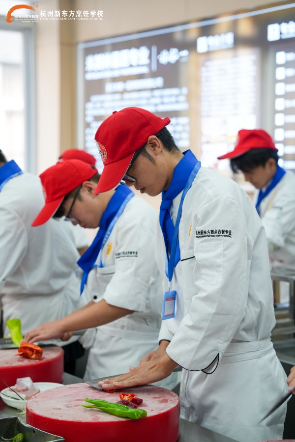在杭州新東方烹飪學(xué)校的實(shí)訓(xùn)教室里,總能看到一個(gè)專注的身影,他手持菜刀,按照標(biāo)準(zhǔn)的姿勢(shì)反復(fù)練習(xí)切配,眼神里滿是認(rèn)真與執(zhí)著。