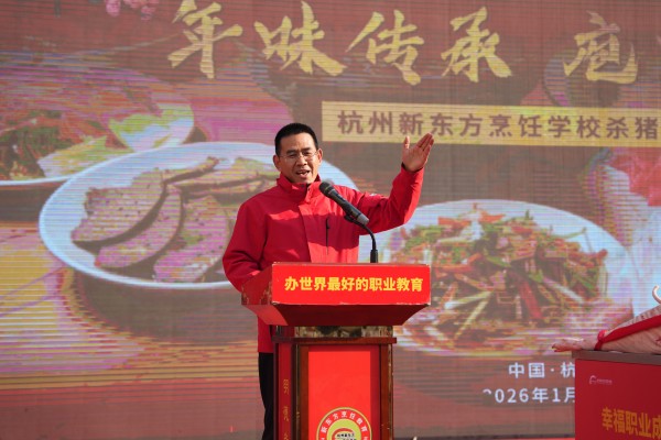 寒假將至,年味漸濃。1月23日,杭州新東方烹飪學(xué)校操場(chǎng)熱鬧非凡,“年味傳承,庖丁饗宴” 殺豬宴主題活動(dòng)圓滿舉行!
